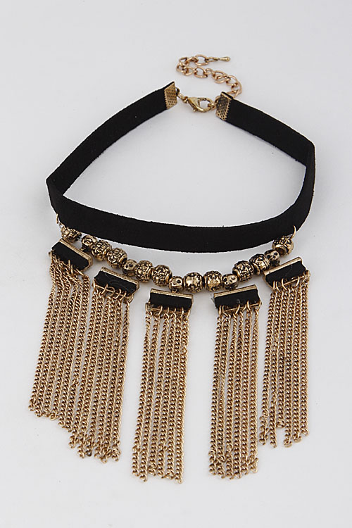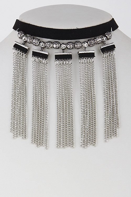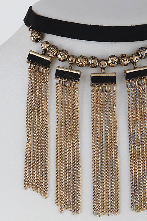 • * Thin Beaded Multi Tassel Long Choker 6GCF3 * 0.5 X 11" approx.