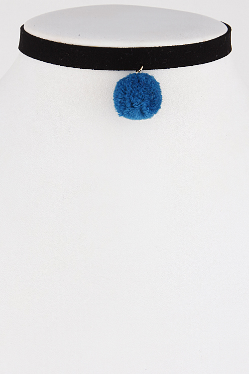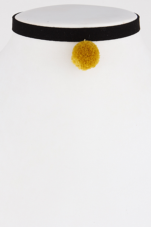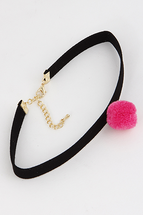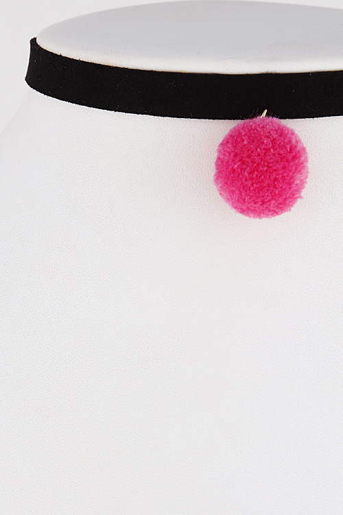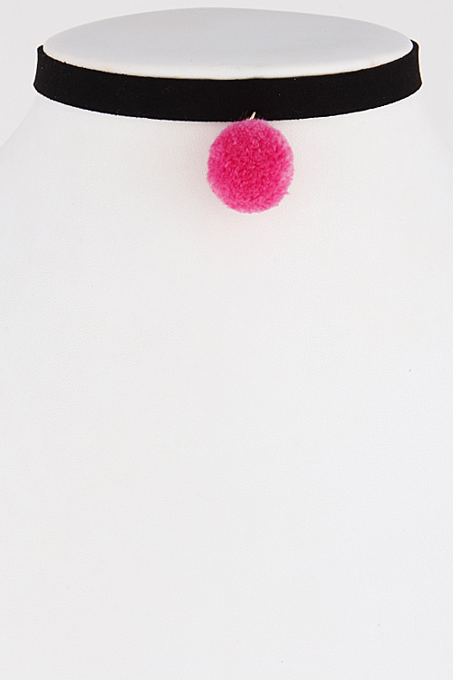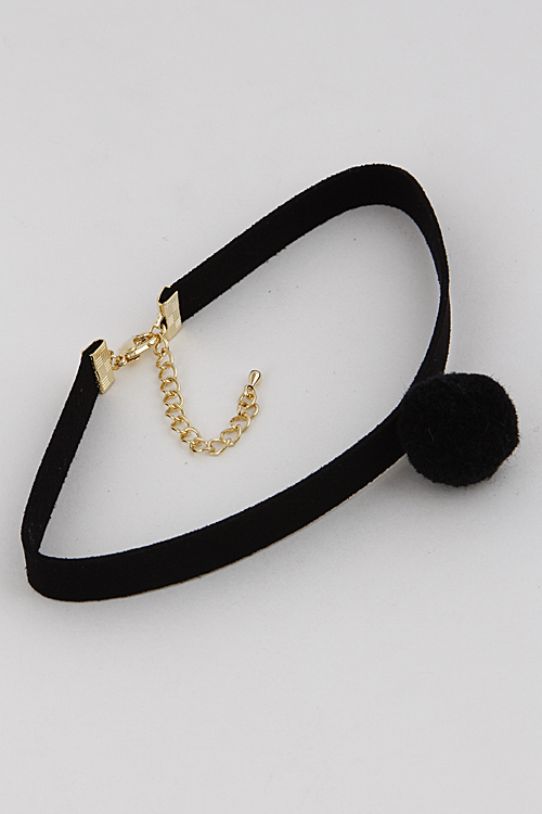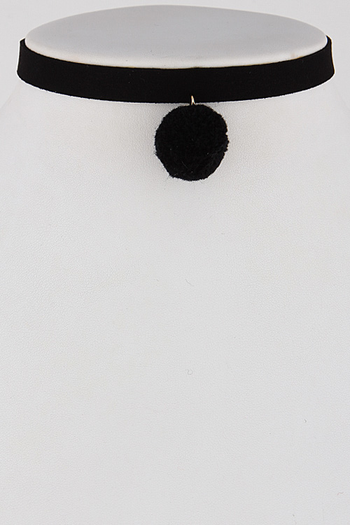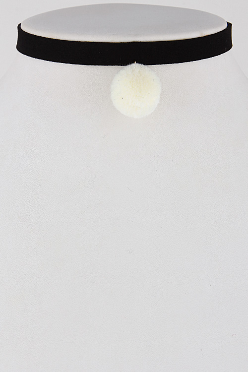 • * Simple Choker With Faux Fur Ball 6JBC5 * 0.4 x 12" approx.