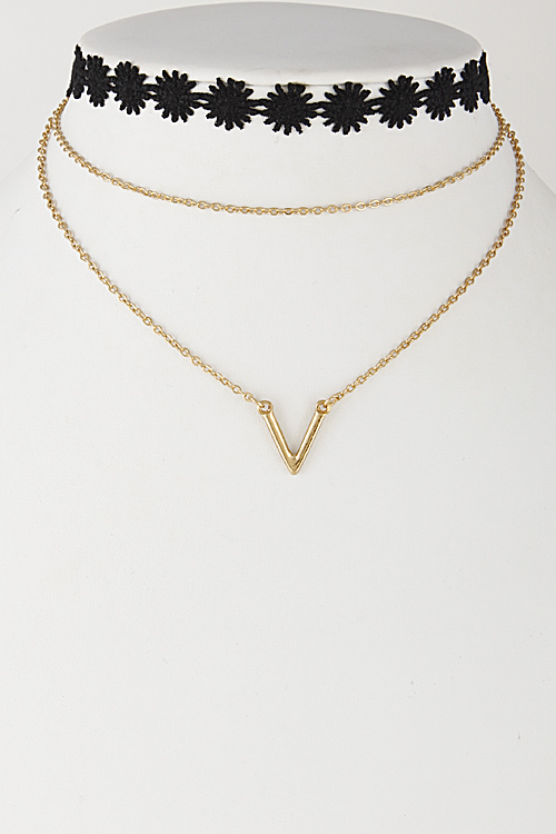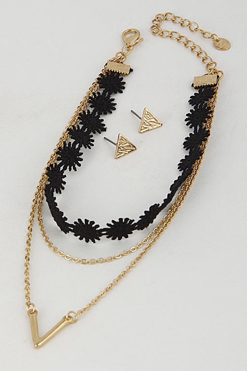 • * Flower Patterned Choker With Chevron Set 6HCH10 * 0.4 x 12" approx.