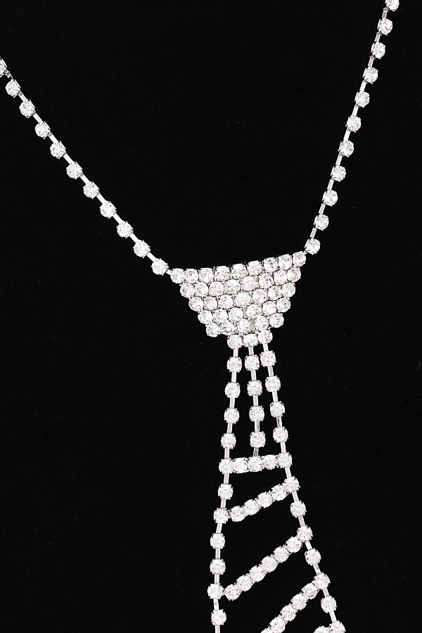- *Introducing the "Rhinestone Necktie Necklace" from H&D Accessories! - a stunning fusion of elegance and style. This exquisite necklace is designed to make a bold fashion statement. With its intricate rhinestone detailing and unique tie-inspired pendant, the Rhinestone Necktie Necklace is the perfect accessory to elevate any outfit. Whether you're attending a formal event or simply want to add a touch of sophistication to your everyday look, the necklace is sure to turn heads and make you feel like a true fashion icon.