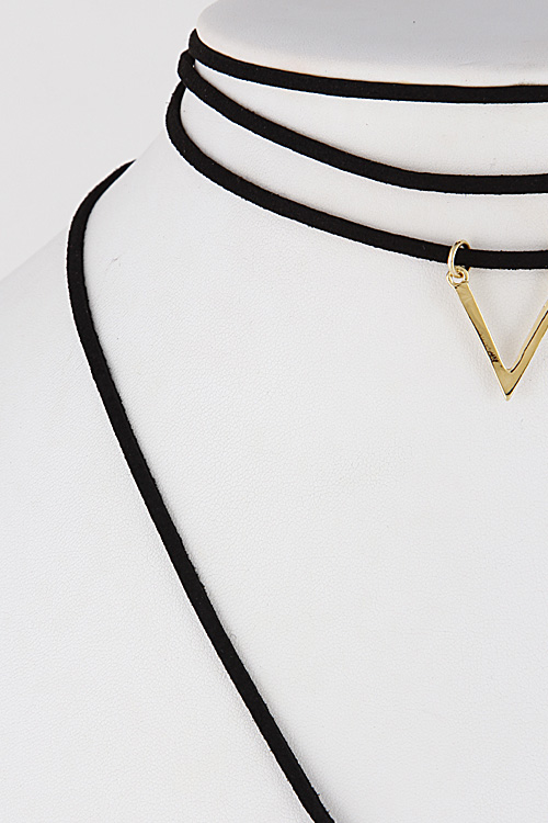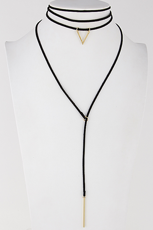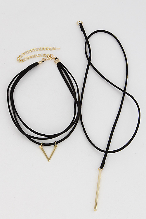 - * Thin Simple Choker Chevron Bar Necklace Set 6JCB5 * 12" approx. * 28" approx.