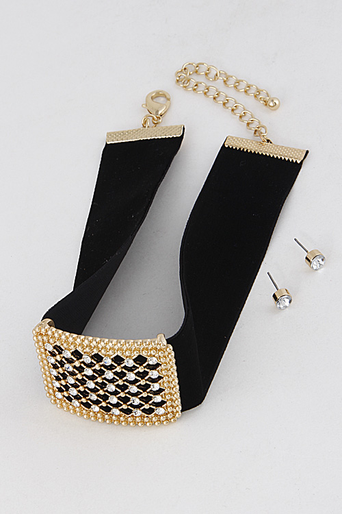 • * Rhinestone Thick Formal Choker Necklace Set 6IBI7 * 1.2 x 12" approx.