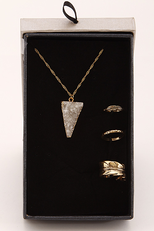 - * Upside Down Trendy Triangle Necklace And Ring Set 6CAD5 * 16" approx.