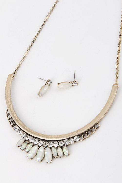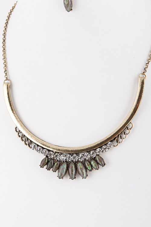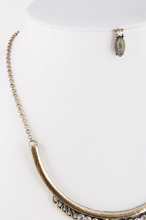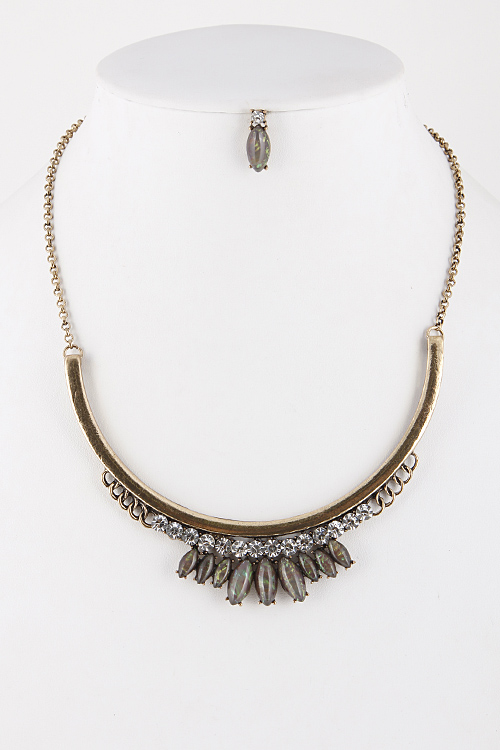 • * Round Shape Faux Stone and Rhinestone Necklace Set 5IDA4 * 9" approx.