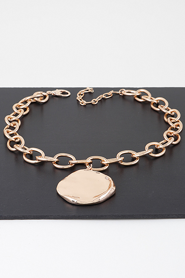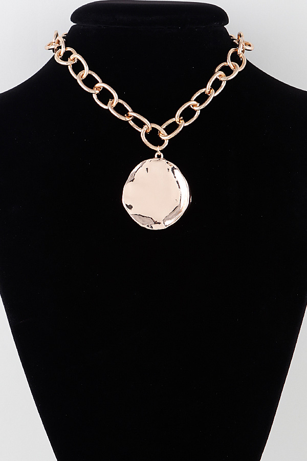 - * Discover the "Big Metal Pendant Link Chain Necklace" – where elegance meets modern design. This captivating necklace from H&D Accessories showcases chain adorned with a luxurious gold disc pendant. Perfect for both casual and formal occasions, this piece will enhance your wardrobe and express your individuality with every wear.