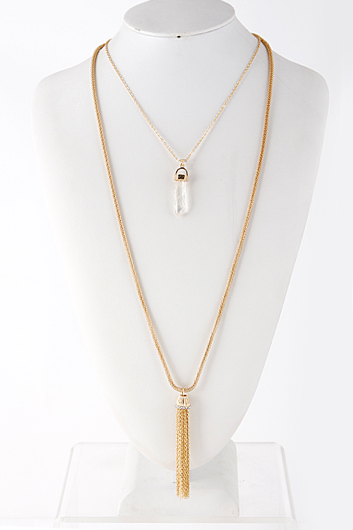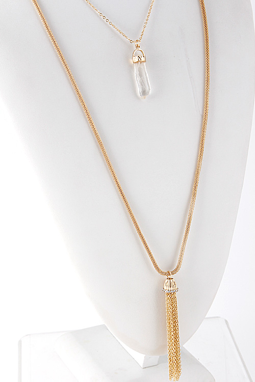 - * Clear Stone Long Chain Tassel Set Necklace 5DCD3 * 28" approx.