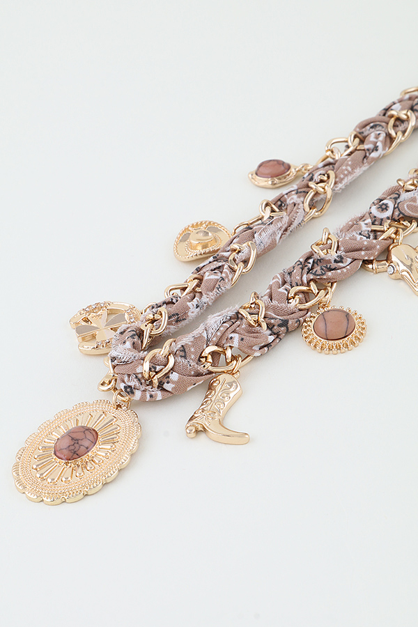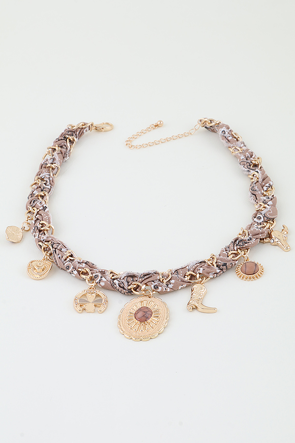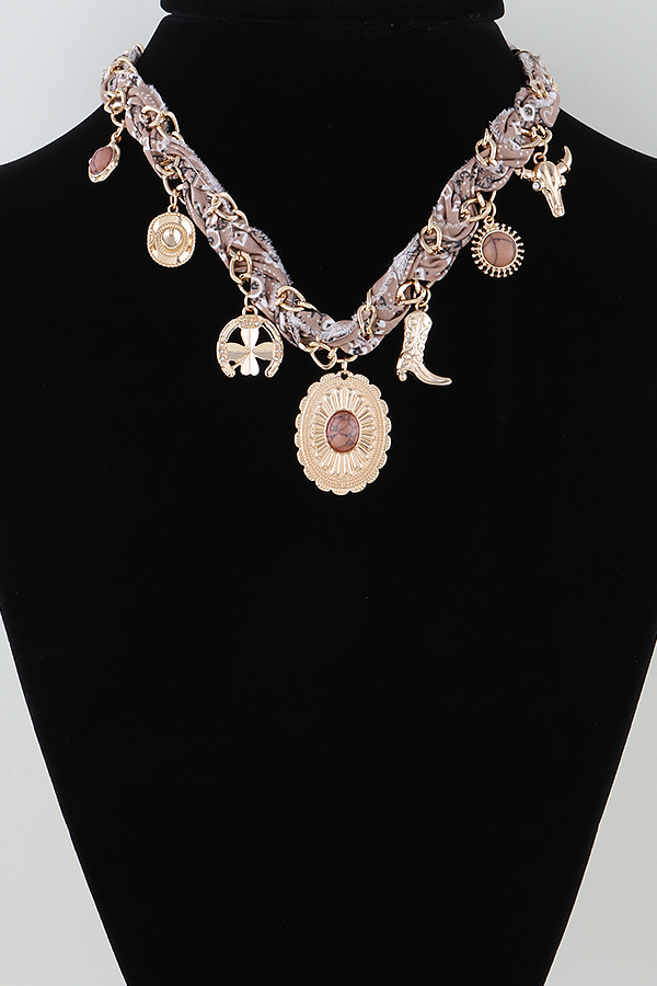 - * Antique Wild West Charms Fabric Necklace