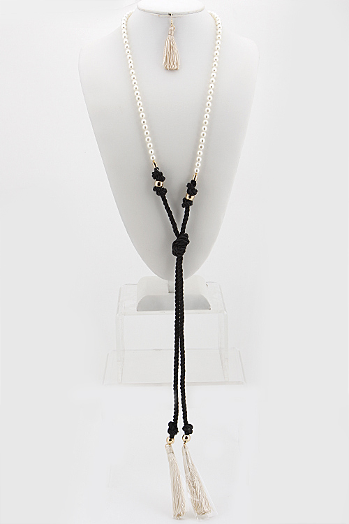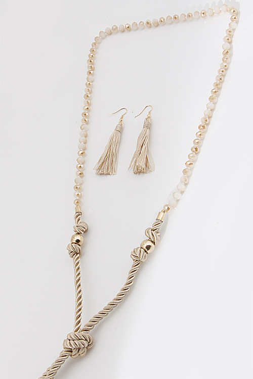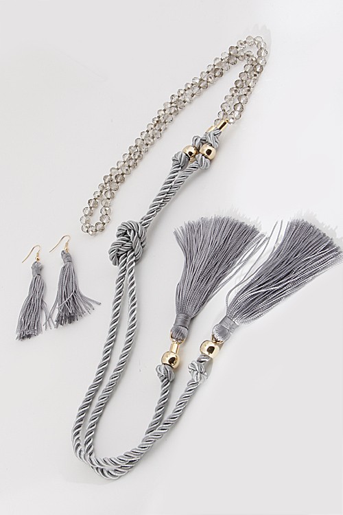 • * Mixed Bead and Tassel Necklace Set 6AAC2 * 30 X 16" approx.