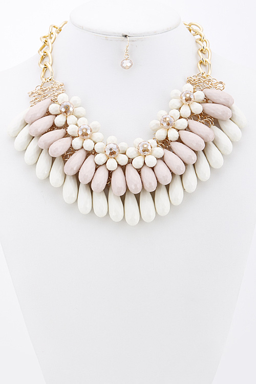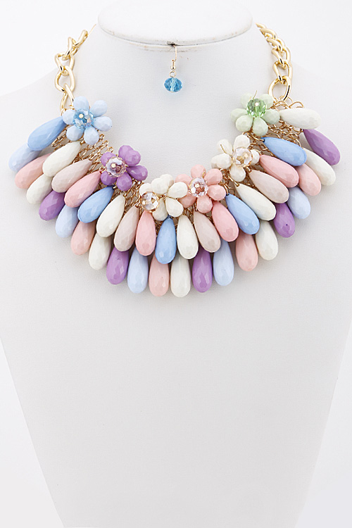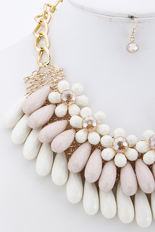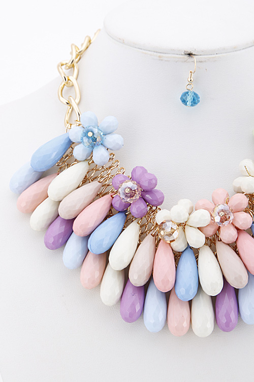 • * Flower Teardrop Bead Necklace Set 6ACF3 * 18 X 2.5" approx.