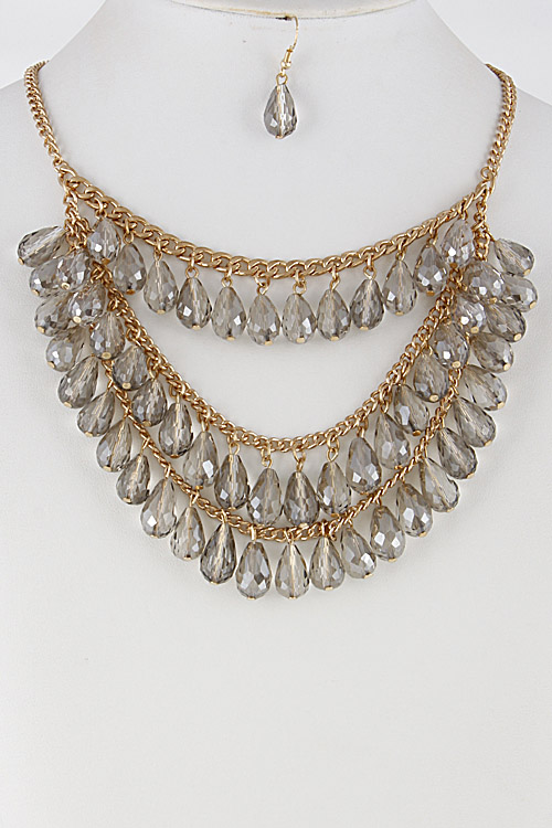 • * Tear Drop Statement Necklace Set 6EBE5 * 16" approx.