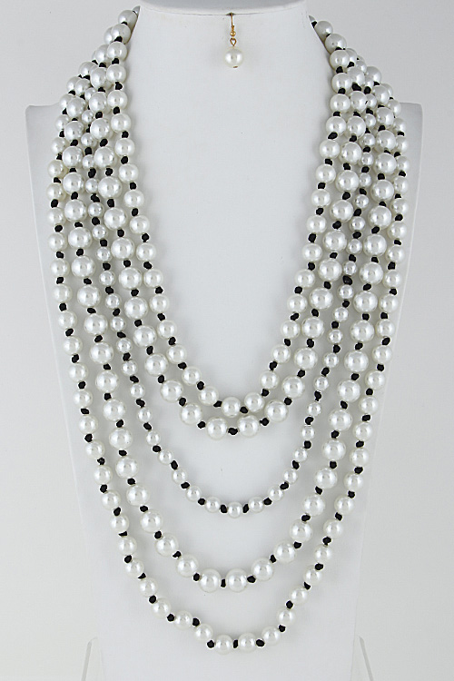 - * Multi Layer Faux Pearl Long Necklace Set 6HCF * 1.5 X 26" approx.