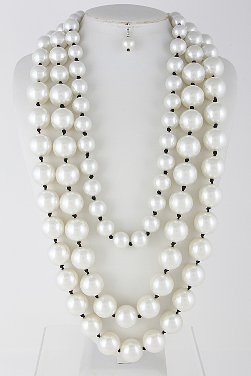 - * Three Layered Faux Pearl Necklace Set 6GCB * 2 X 28" approx.