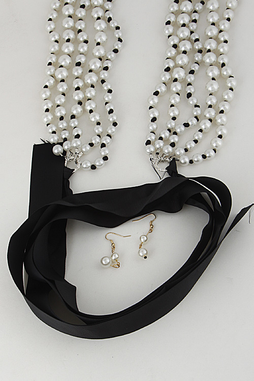 • * Faux Pearl Layered Necklace Set 6HCJ6 * 1.2 X 104" approx.