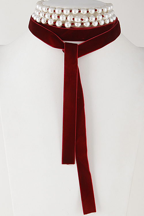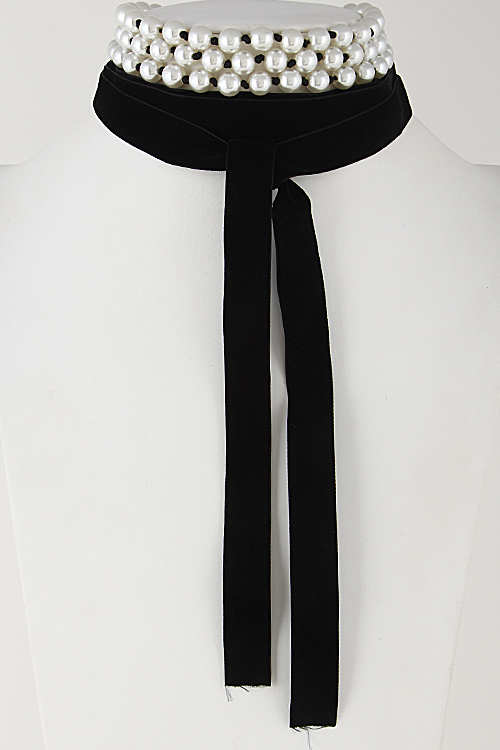 - * Faux Pearl Choker Necklace Set 6HCJ6