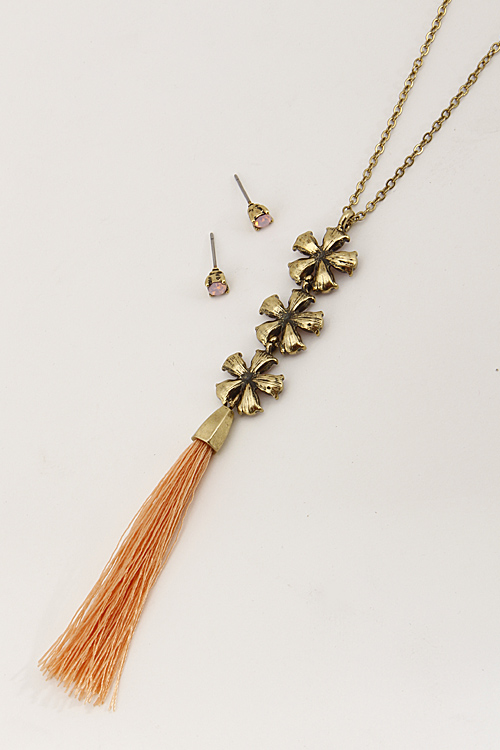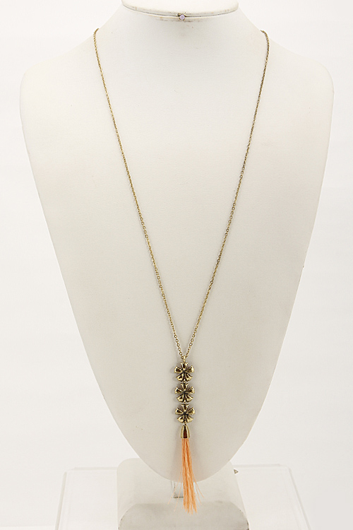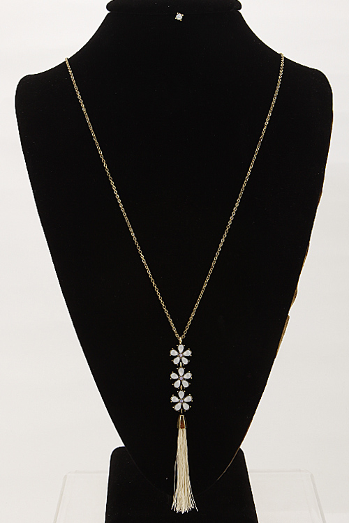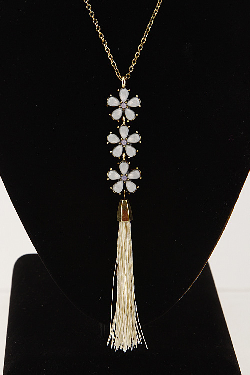 - * Long Necklace With Three Flower And Tassel Set 6CAB1 * 30" approx.