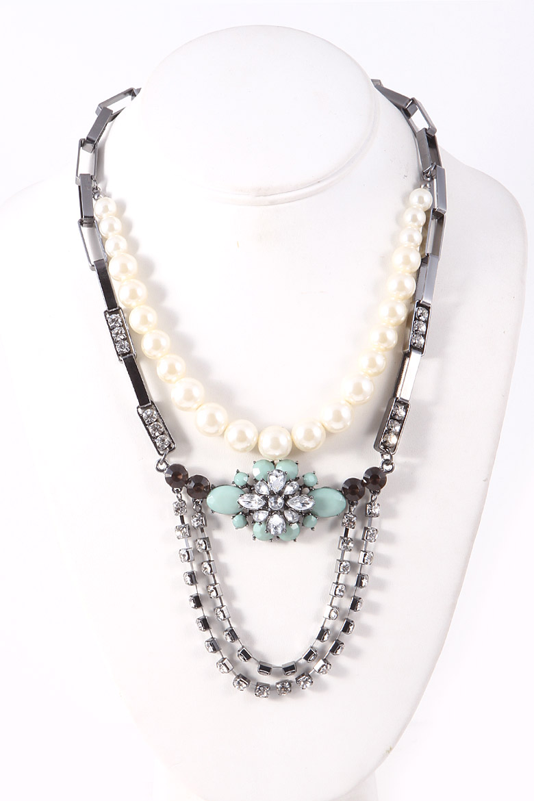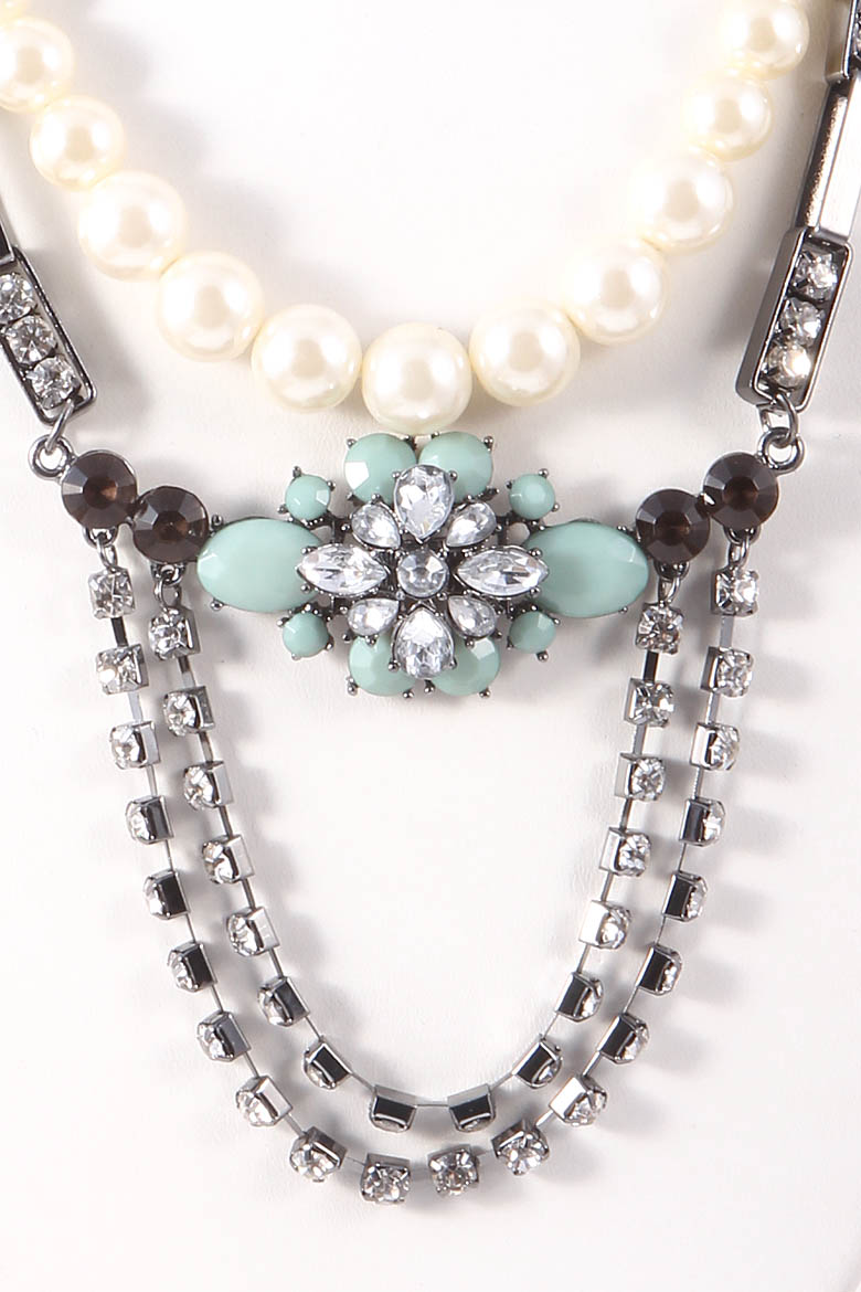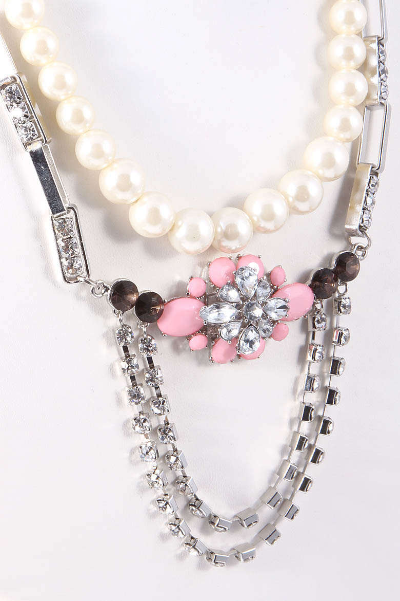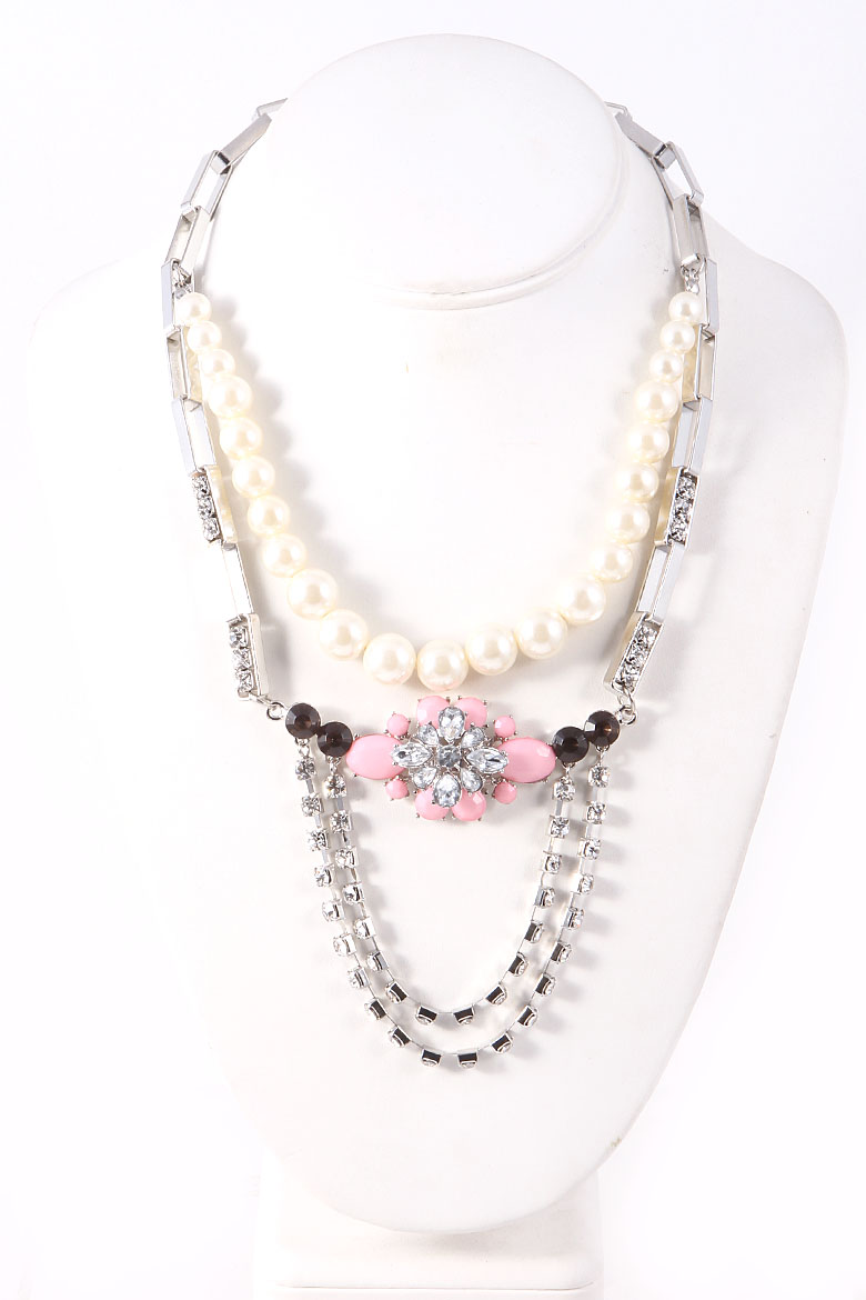 - * Floral Rhinestone Pearl Detail Necklace 5FBI5 * 14" approx.