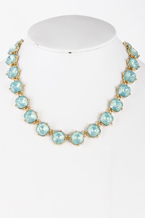 - * Round Square Jewel Chain Linked Necklace 5CAF3 * 15" approx.