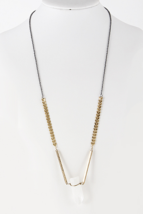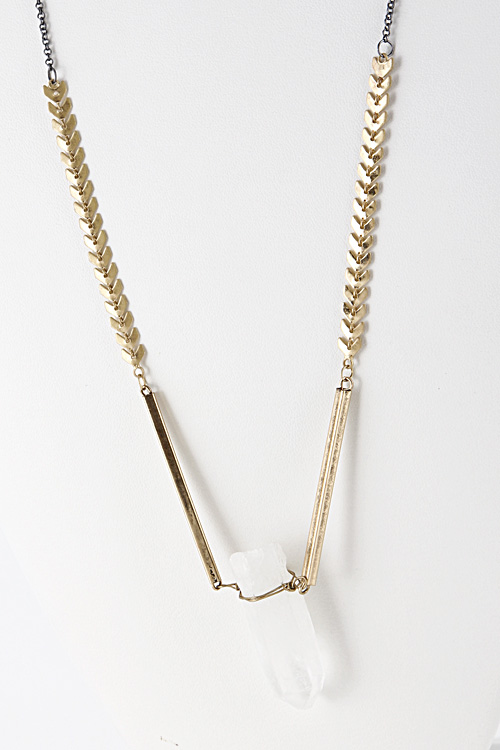 • * Chevron Linked Clear Stone Wired Pendant Necklace 5FCE4 * 26 x 1.5" approx.