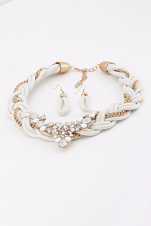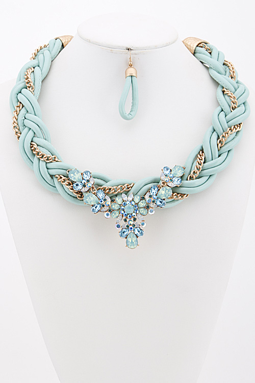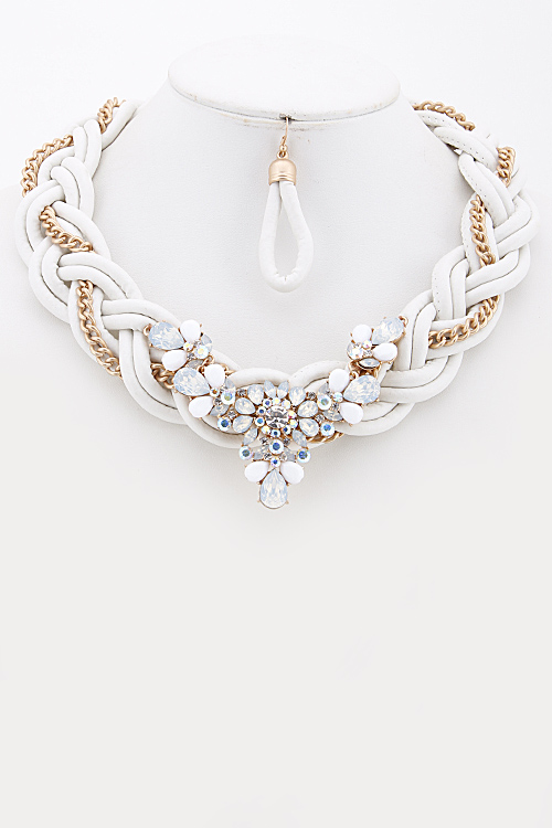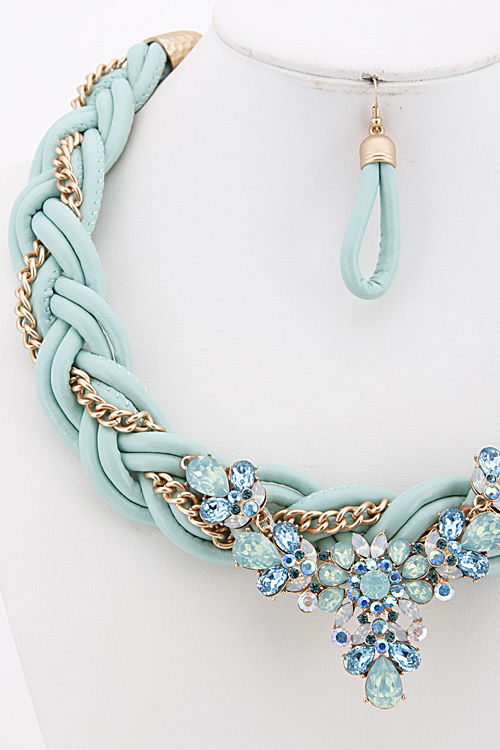 - * Rhinestone and Chain Statement Necklace Set 6ACE9 * 18 X 2.5" approx.
