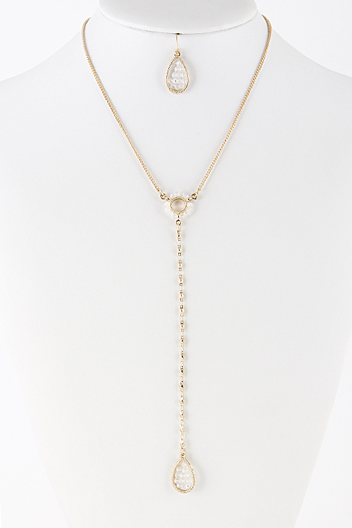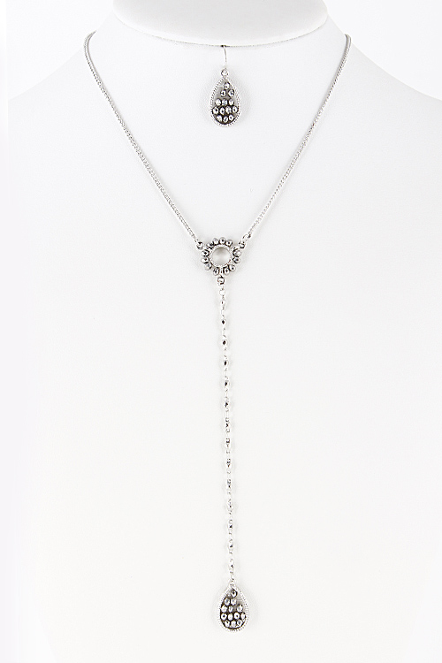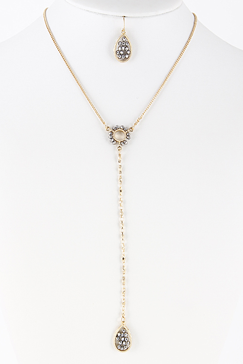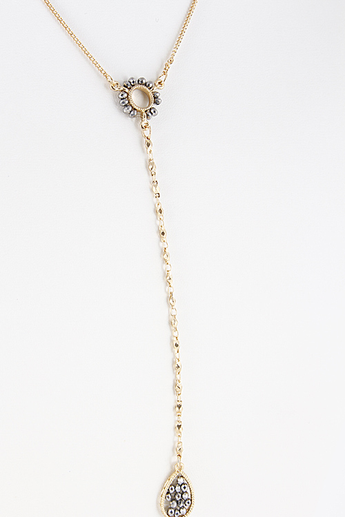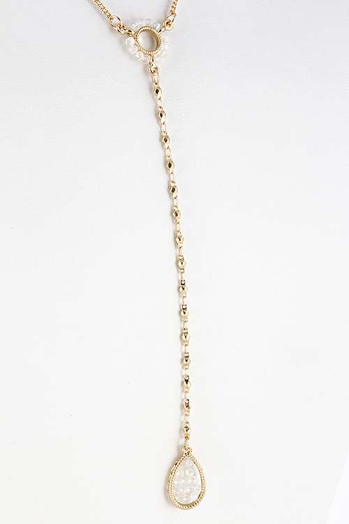• * Ring Of Beads Chain Teardrop Shaped Pendant Necklace 5FBJ5 * 16 x 6.5" approx.