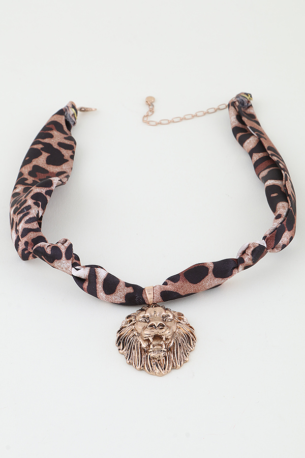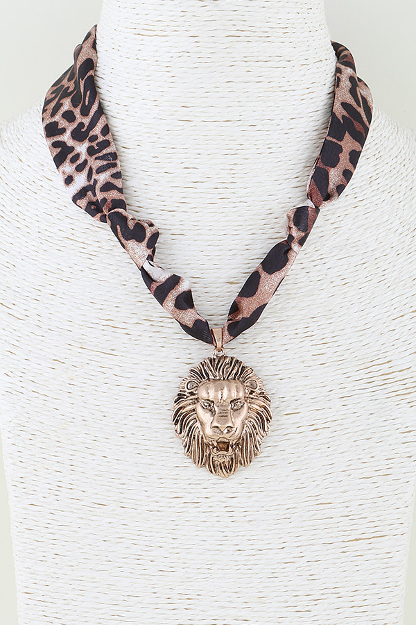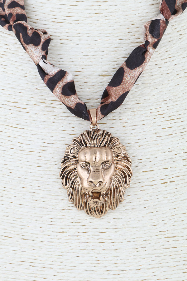 - * This Lion Emblem Fabric Wrap Necklace from H&D Accessories features a bold design with a textured fabric wrap and a detailed lion head emblem. The fabric showcases a distinctive pattern, while the lion emblem is crafted with intricate detailing, capturing the animal’s fierce expression and mane texture. Meticulous craftsmanship is evident in the secure attachment of the emblem to the fabric, creating a piece that blends bold style with artistic detail, making it a standout accessory for those who appreciate unique and statement-making jewelry.