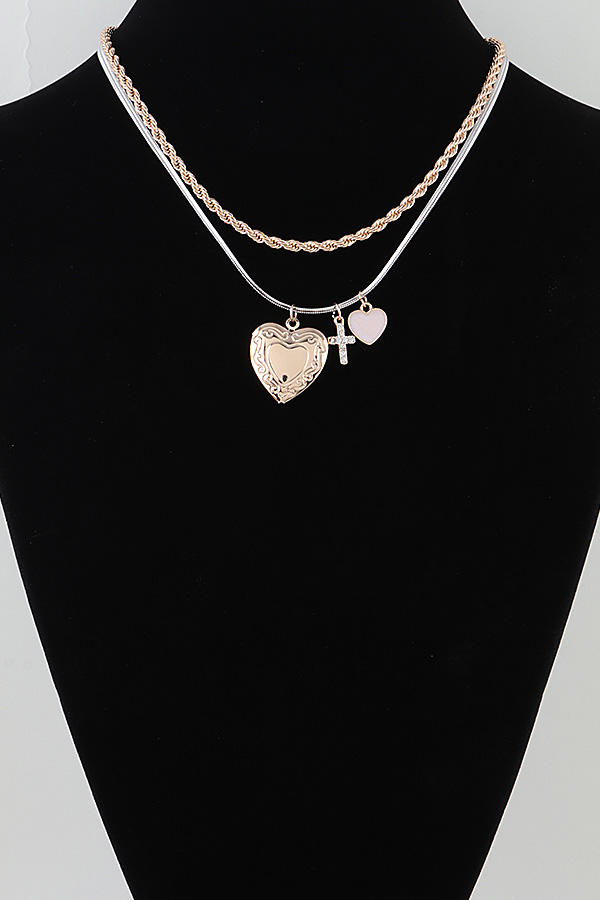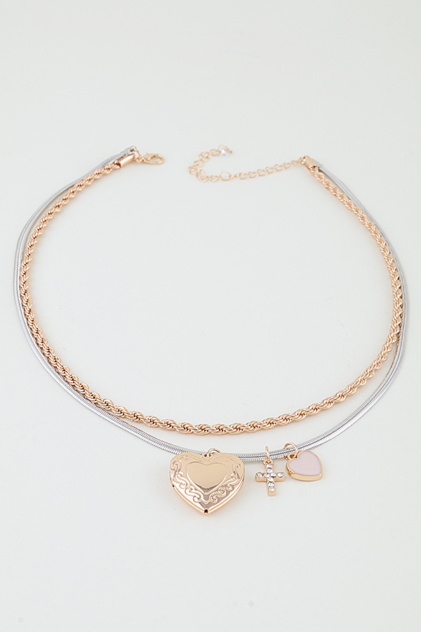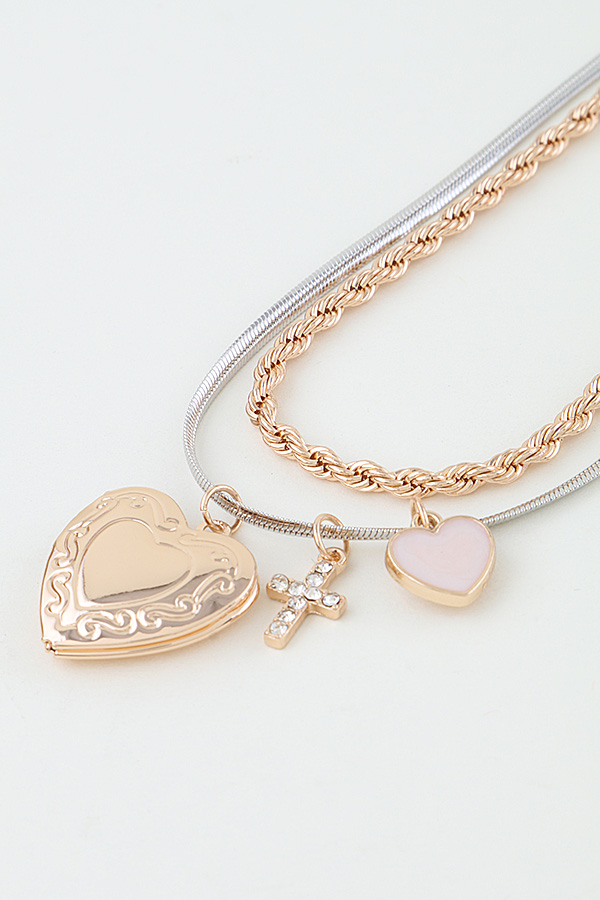 • * Heart Cross Charm Chain Necklace