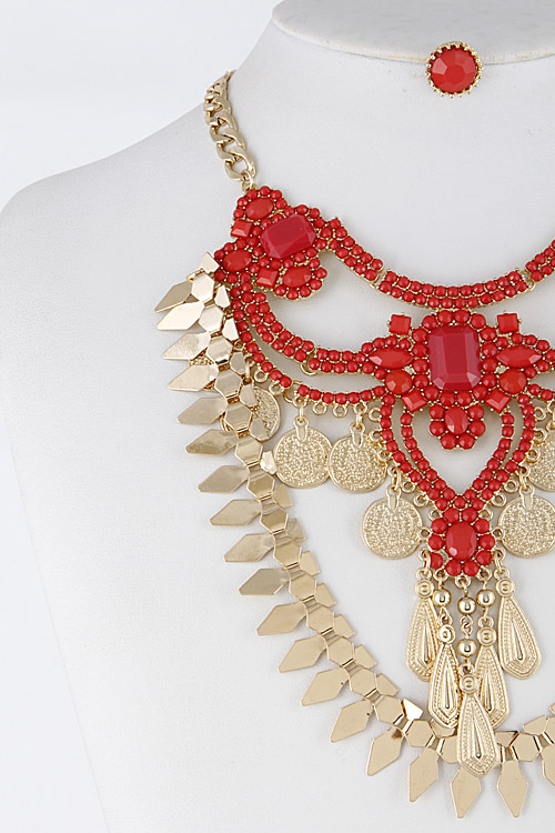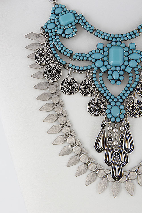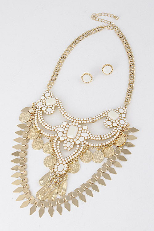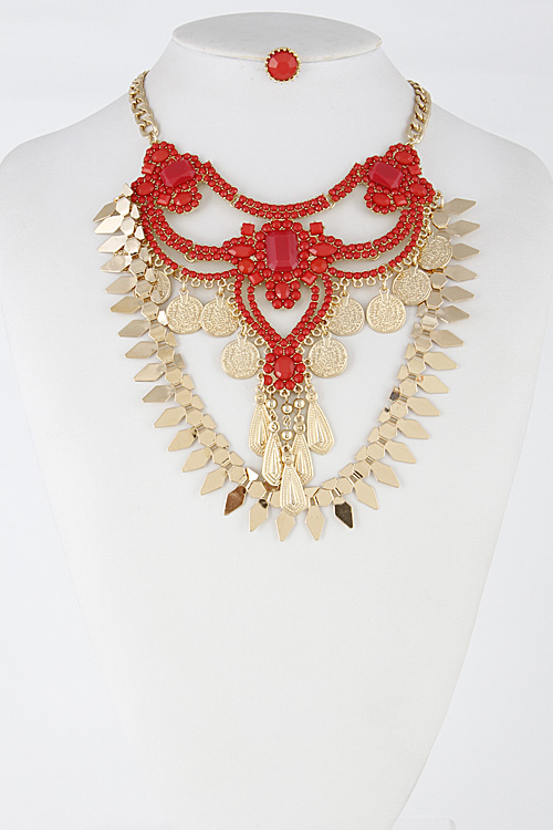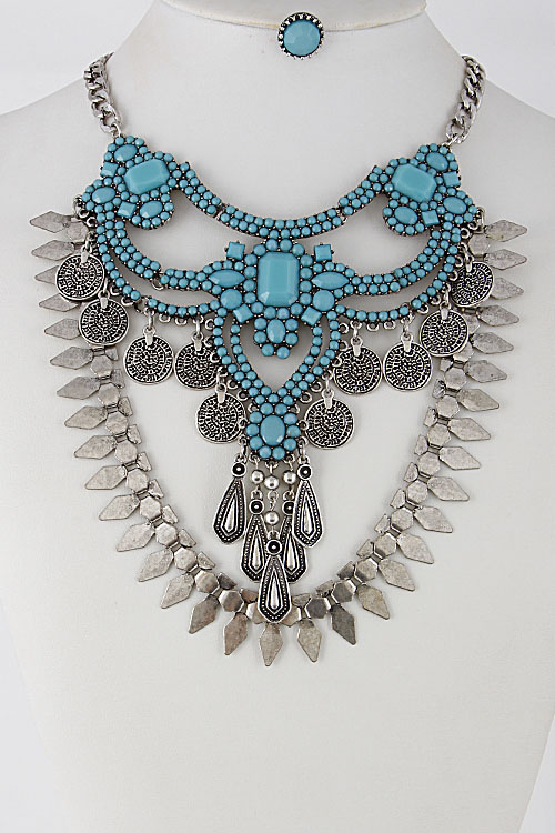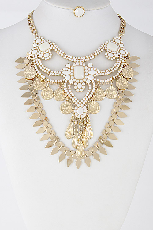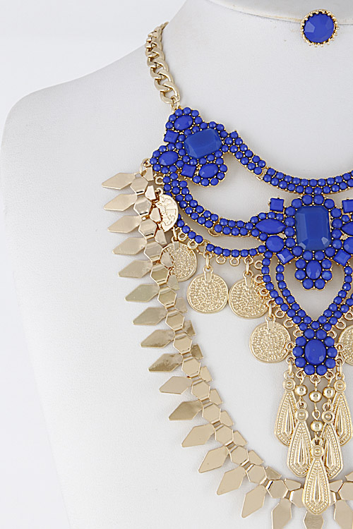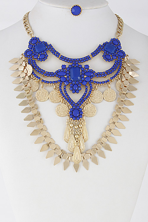 • * Egypt Inspired Statement Necklace Set 6FAD1 * 14" approx.