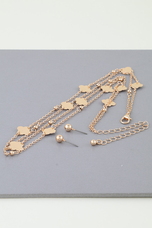 - * Introducing the "Golden Clover Elegance Set" – a stunning combination of a necklace and earrings that radiate sophistication. This exquisite set from H&D Accessories is designed to elevate any outfit, making it an essential addition to your jewelry collection.