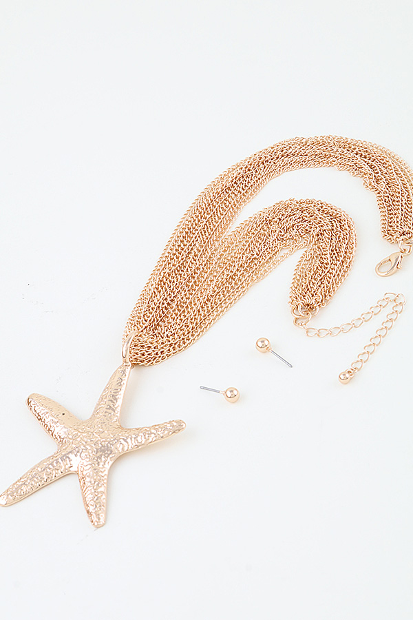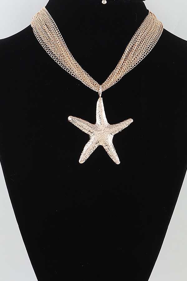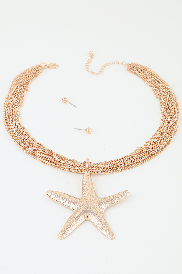 • * Hammered Starfish Chain Statement Necklace