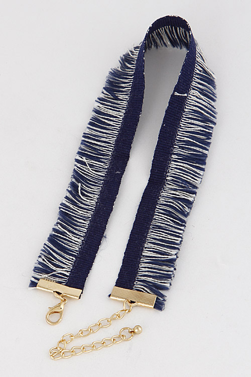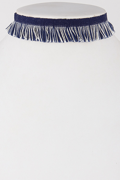 • * Fringed Denim Choker Necklace 6KBC5 * 1 x 12" approx.