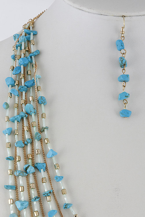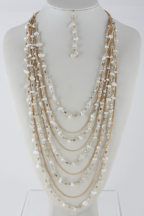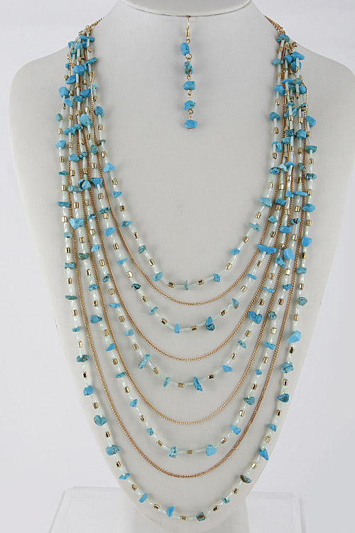 • * Long Layered Bead Necklace Set 6EAJ5 * 22" approx.