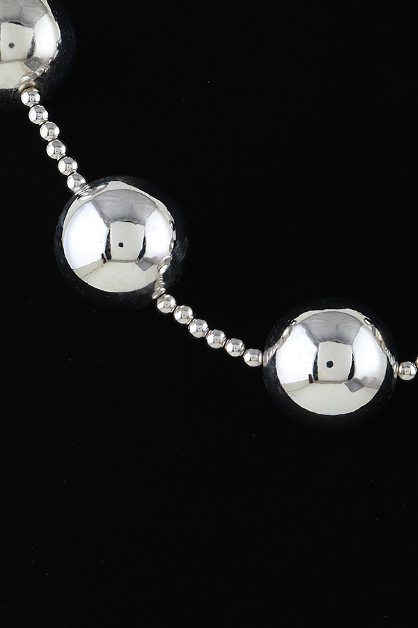 - * This is the Multi Beaded Statement Necklace from H&D Accessories. It features a bold design with large spherical beads interspersed with smaller beaded links, creating a striking and glamorous look. The necklace sits prominently on the neckline, making it a true statement piece. You can wear it when attending a red-carpet event, going to a high-end gala dinner, or pairing it with a simple, solid-colored evening gown for a charity ball, instantly elevating your outfit with its luxurious and eye-catching charm.