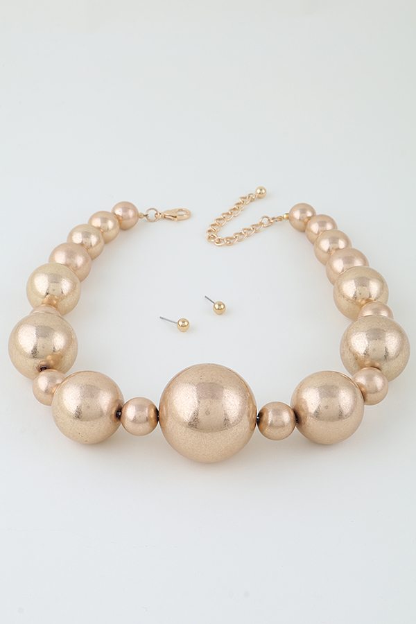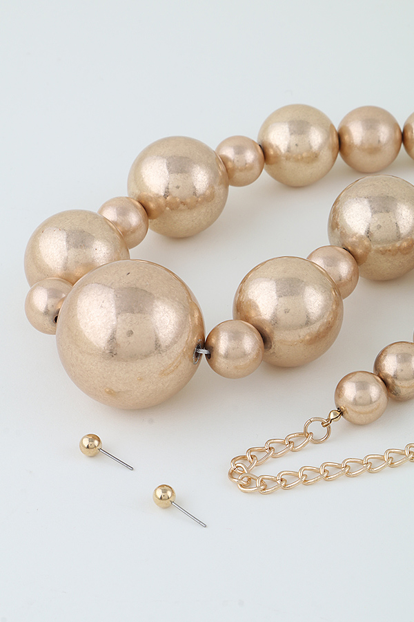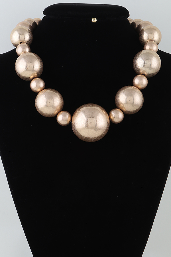 - * This is the Burnished Beaded Statement Necklace from H&D Accessories. It features a striking design with a mix of large and small burnished beads, creating a textured and luxurious look. The necklace sits prominently on the neckline, making it a bold focal point. You can wear it when attending a formal awards ceremony, going to a high-profile charity event, or pairing it with a sleek, monochromatic jumpsuit for a fashion-forward evening, instantly adding a touch of opulent sophistication to your ensemble.