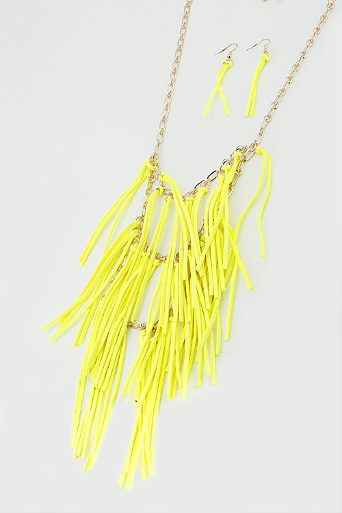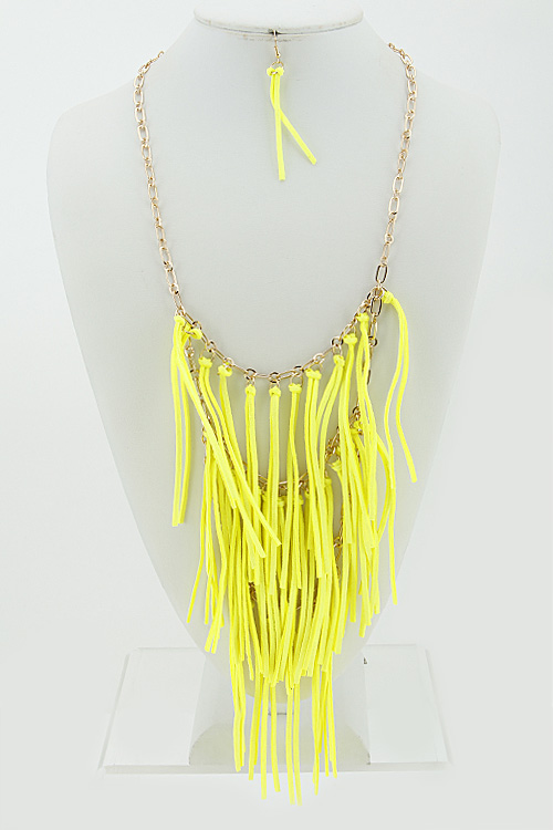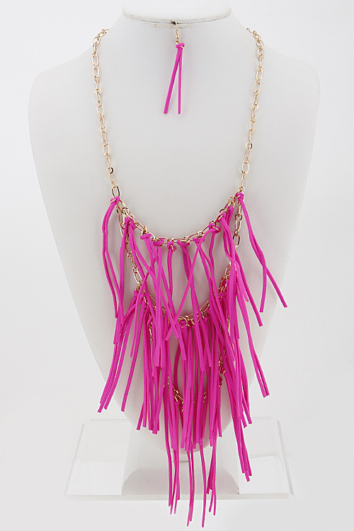 • * Chain Tassel Fringe Necklace Set 6ABJ2 * 25" approx.