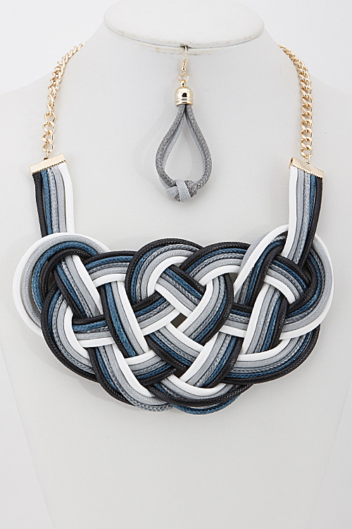 • * Mixed Color Braided Statement Necklace Set 6ACA9 * 16" approx.