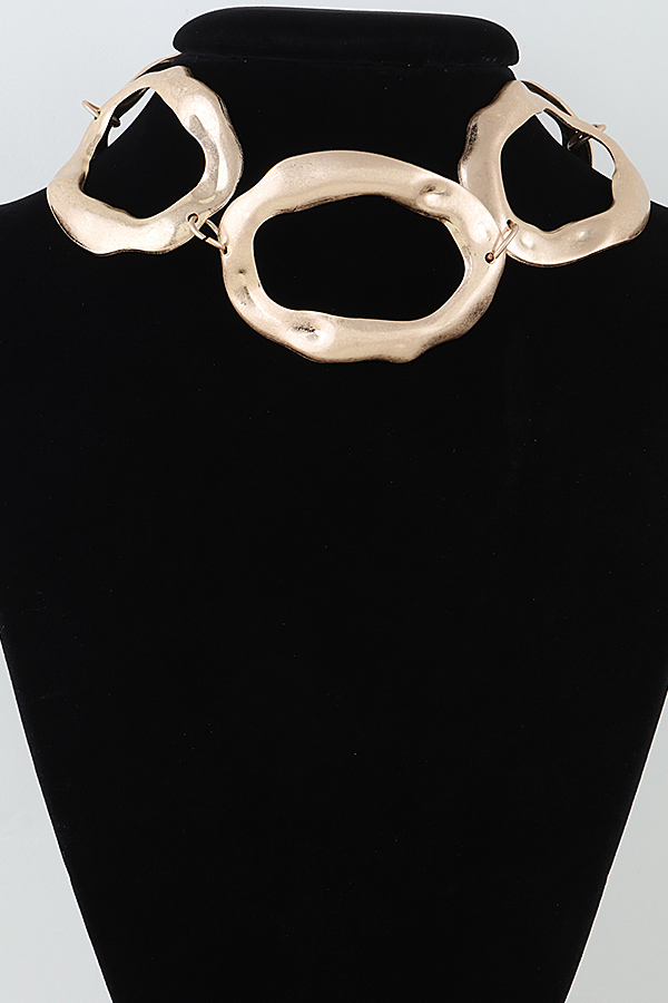 - * Hammered Open Disc Choker Statement Necklace