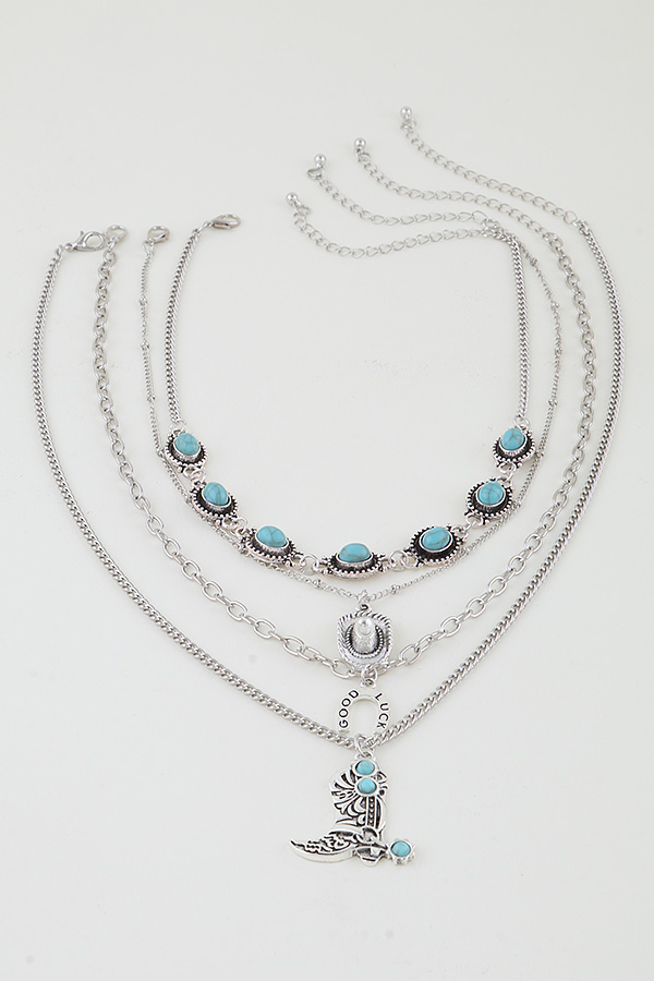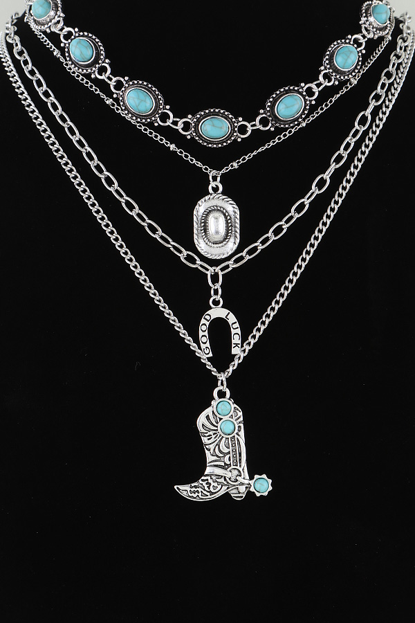 • * Multi Antique Wild West Charms Necklace from H&D Accessories showcases a layered design with various antique - style Wild West - inspired charms, including a boot pendant and other distinctive elements. The multiple chains add depth and a sense of vintage flair. Perfect for adding a touch of rugged, western charm to your outfit when attending a country music concert or a western - themed party.