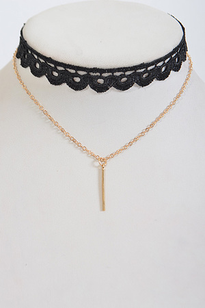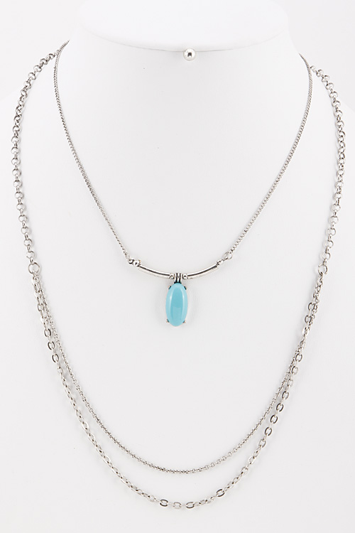 • * Nice Three Line and Stone Necklace 5GCH2 * 14 x 4.5 approx.