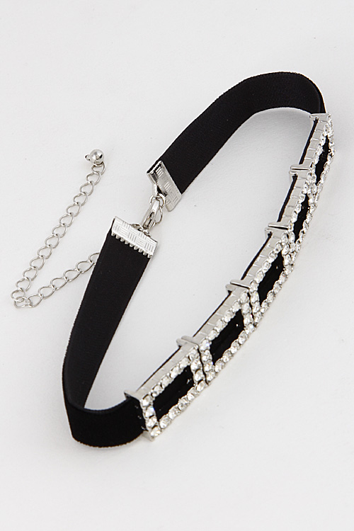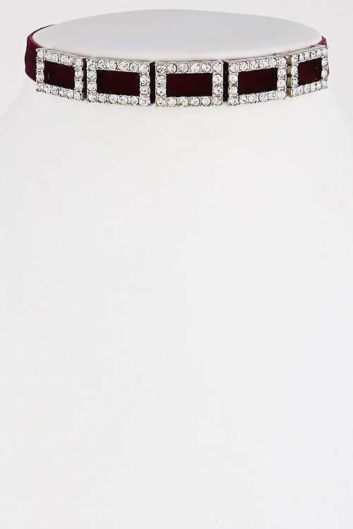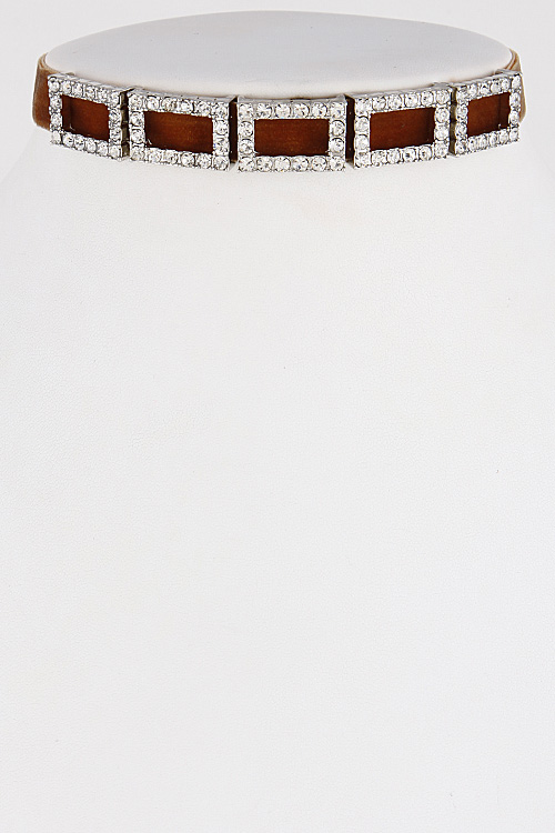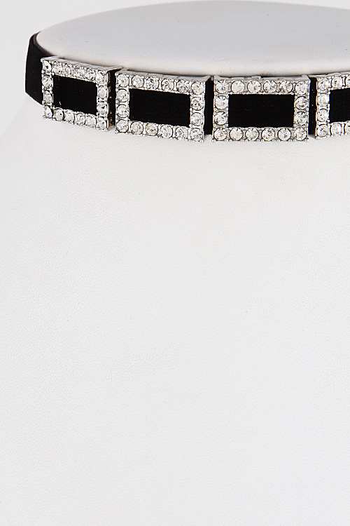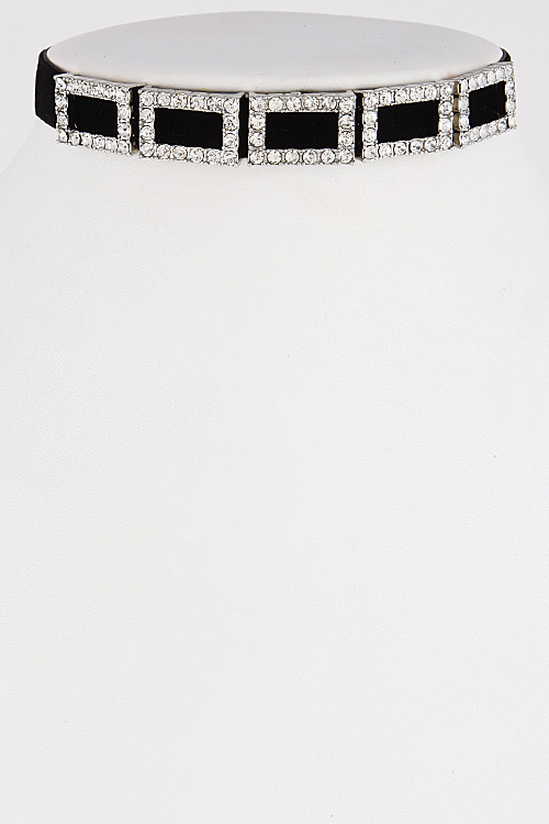 - * Rhinestone Rectangle Formal Choker Necklace 6JBC6 * 0.5 X 10" approx.