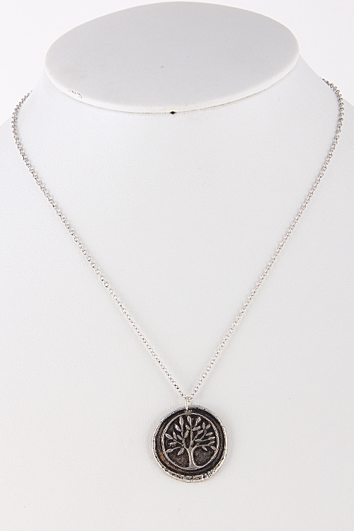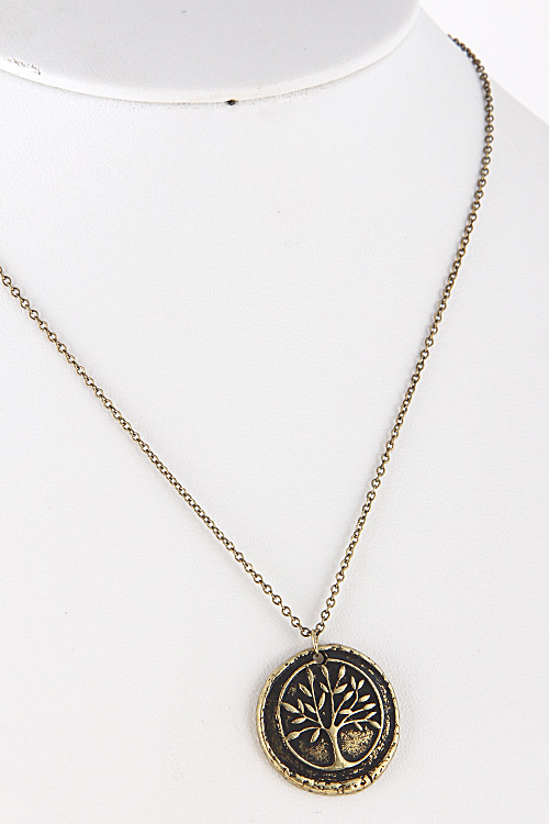 • * Two Faced Antique Circle Pendant Necklace 5DAC11 * 16" approx.