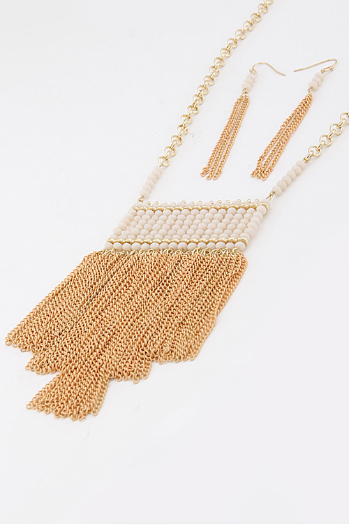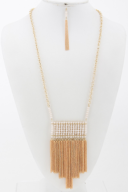 • *Long Necklace With Beads And Tassel 6BAG1 *25 x 5" approx.
