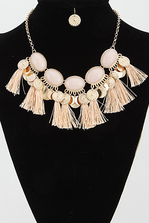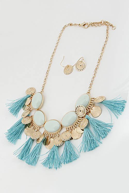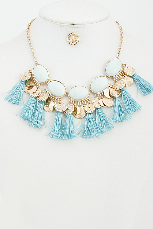 - * Bead and Coin Statement Necklace Set 6ABC7 * 15" approx.