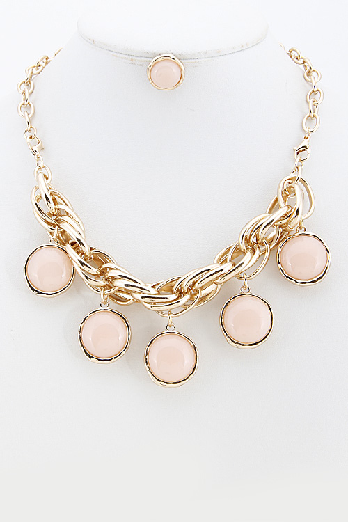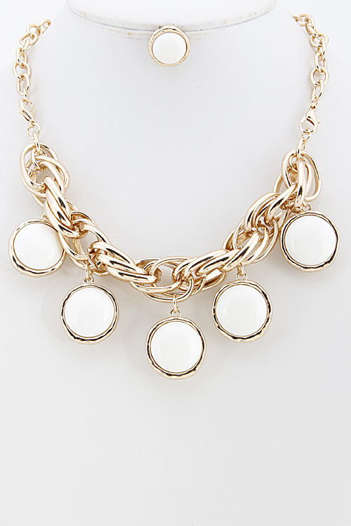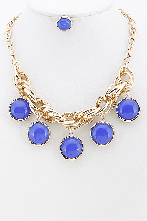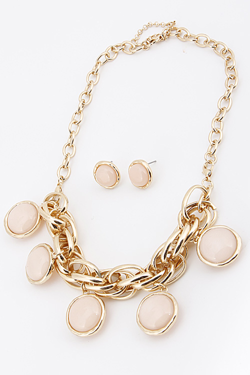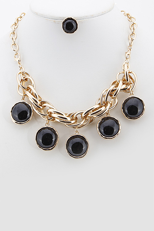 • * Circle Stone Chain Necklace Set 6ABD6 * 16" approx.