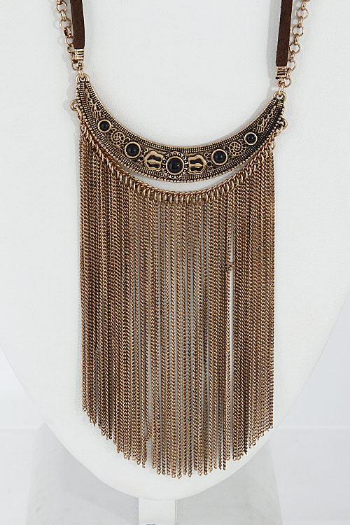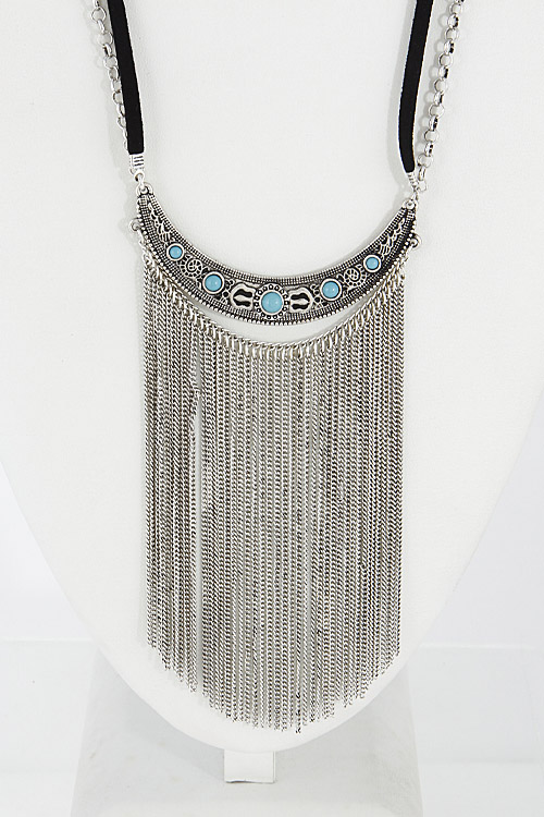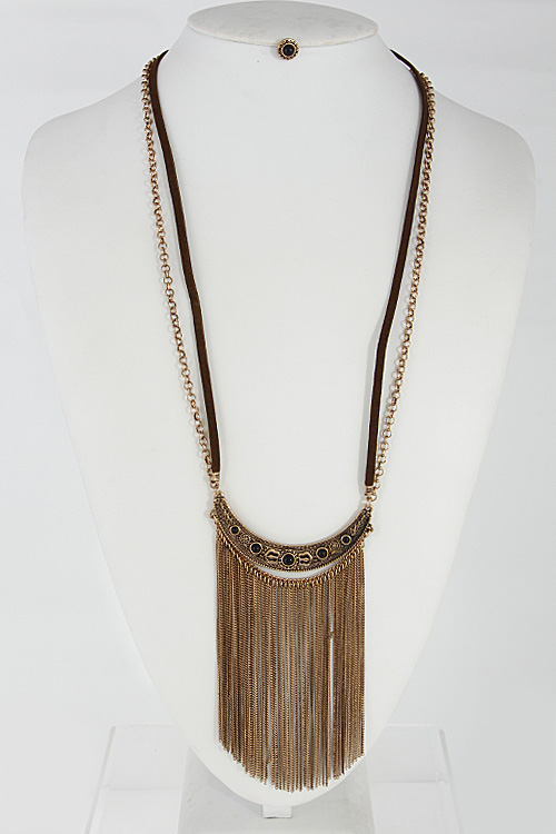 - * Tribal Inspired Long Necklace Set With Fringes 6DCE10 * 26" approx.
