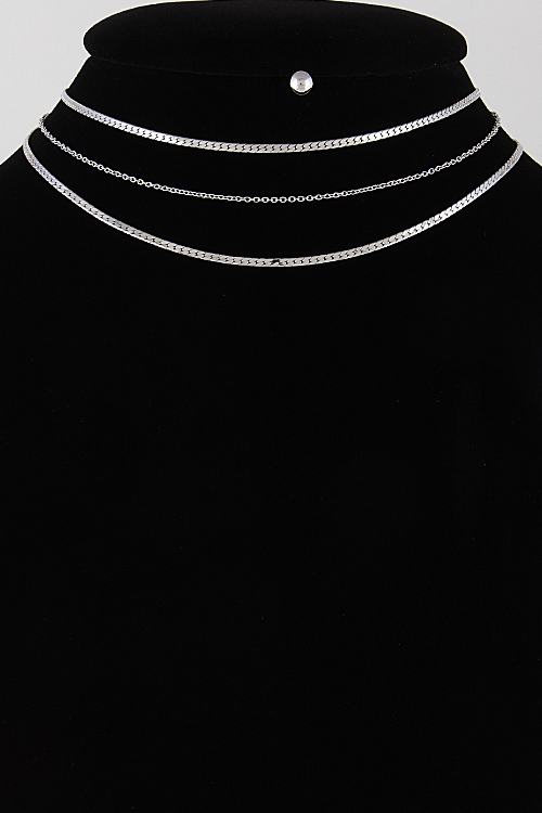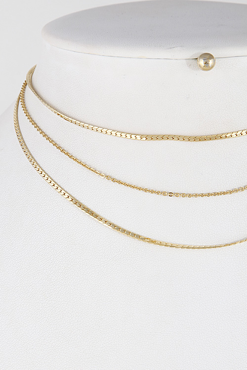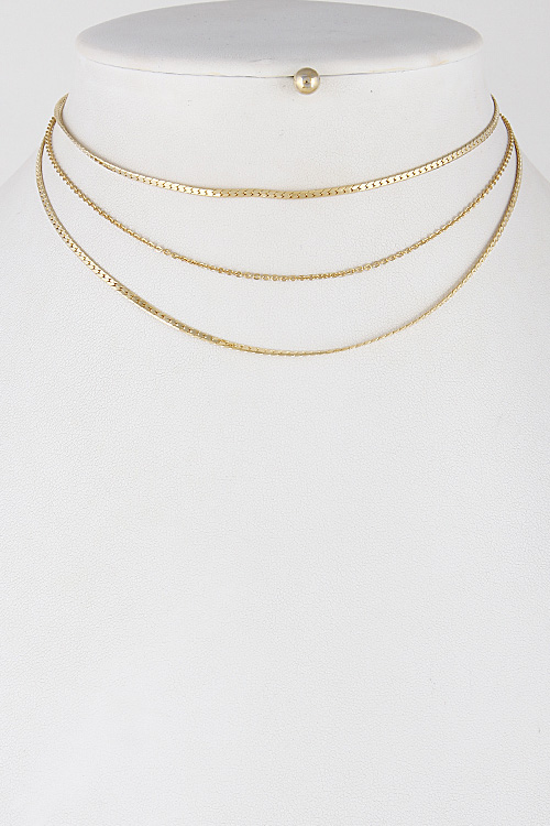 • * Three Line Layered Choker Necklace 7EAB5 * 12" Approx.
