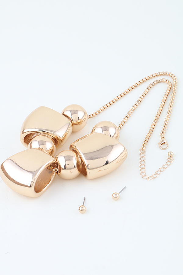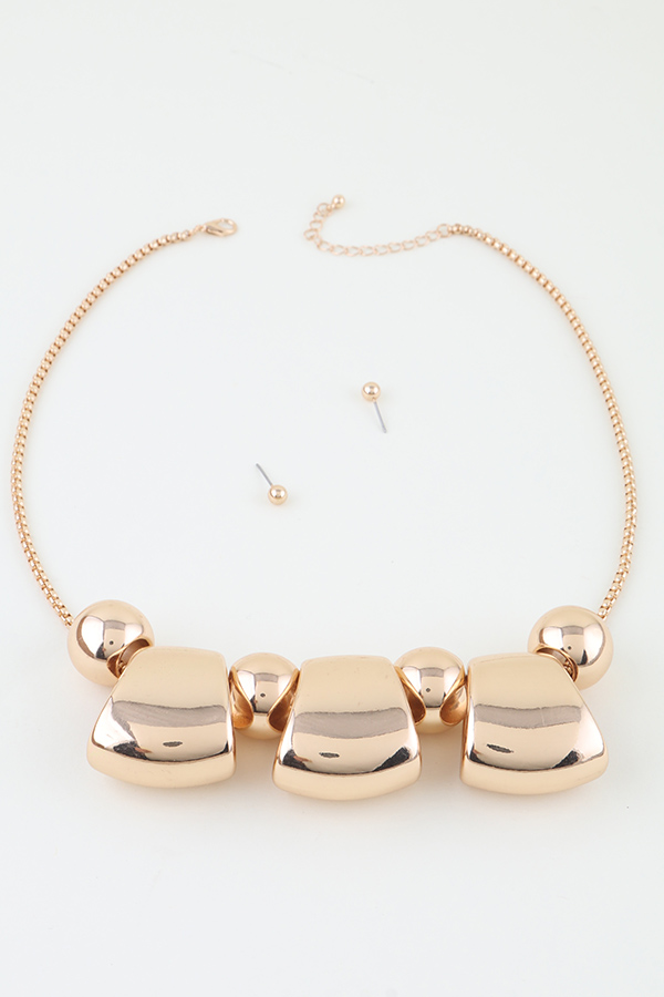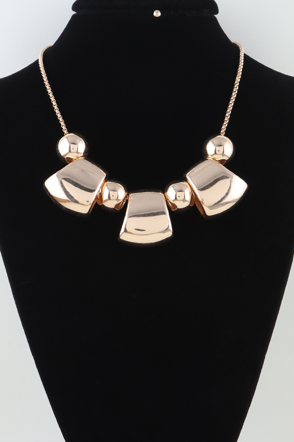 - * Make a bold, modern statement with this Polished Geometric Beaded Chain Necklace from H&D Accessories. Featuring a striking arrangement of polished metal beads, this necklace combines smooth, spherical accents with large, angular geometric pendants, creating a dynamic, sculptural focal point. The reflective, high-shine finish catches light with every movement, while the delicate chain ensures a comfortable, lightweight fit. Perfect for elevating any ensemble, this necklace blends contemporary design with timeless elegance, making it a standout addition to your jewelry collection.