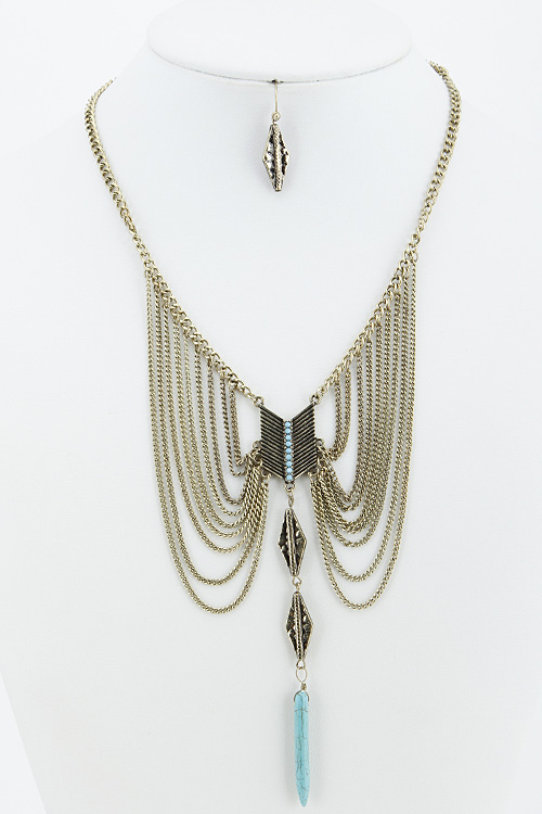 • * Aztec Inspired Drop Necklace 5JBD7 * 16" approx.