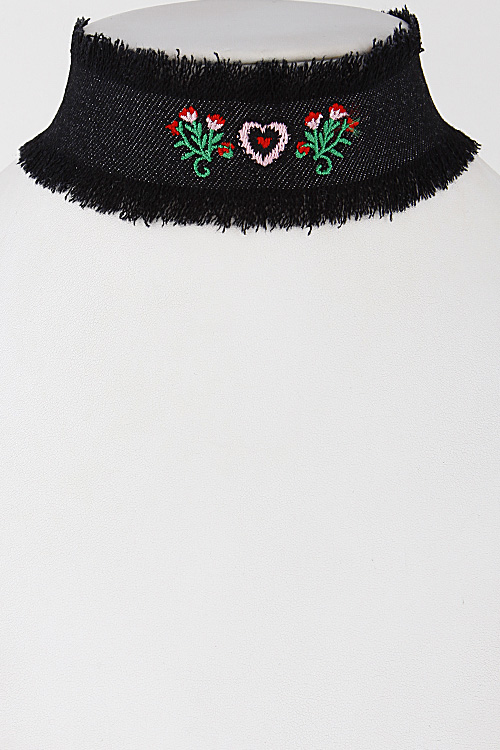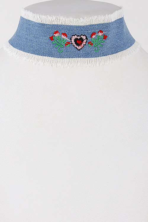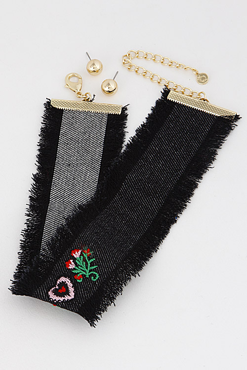- * Lovely Fringed Denim Choker Necklace 7ACE1 * 2 x 12" Approx.