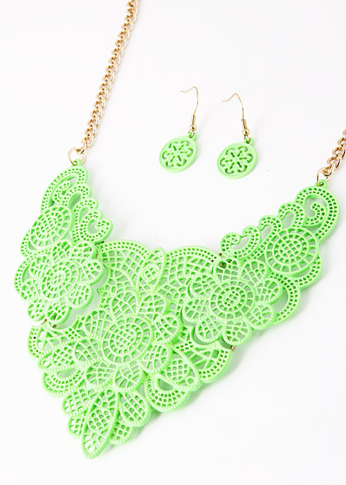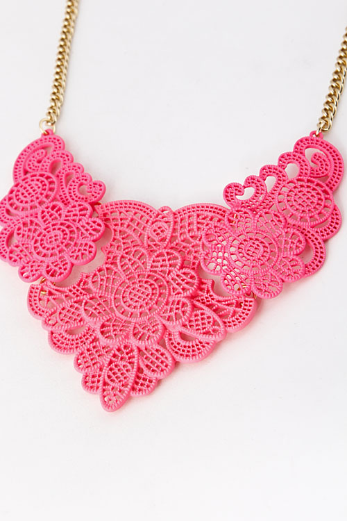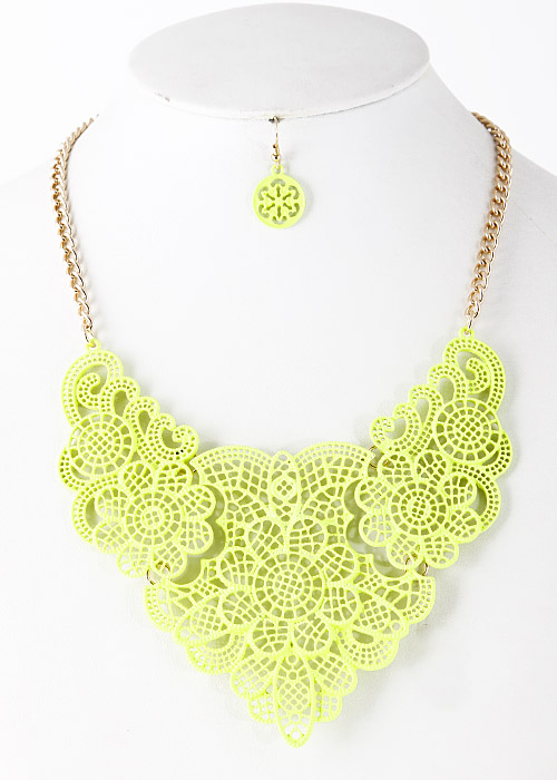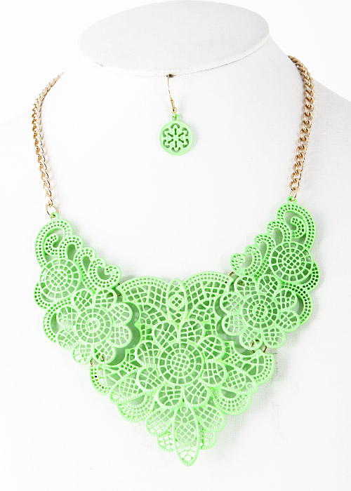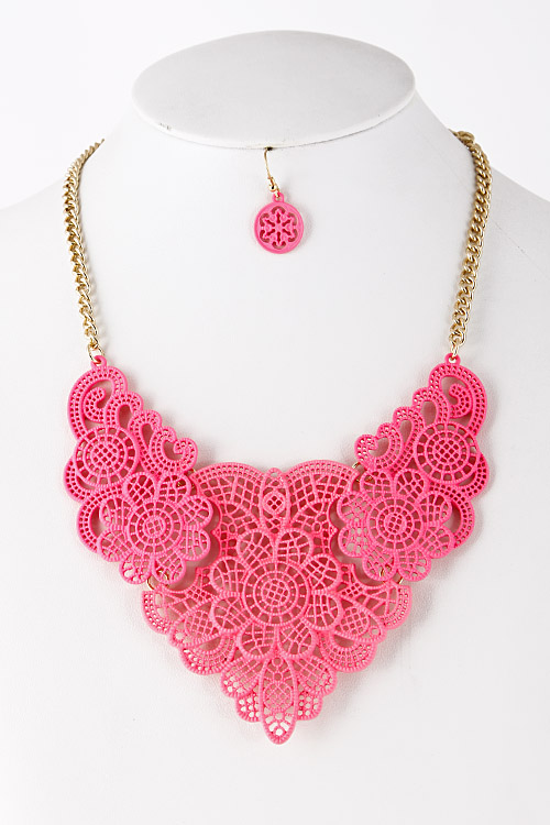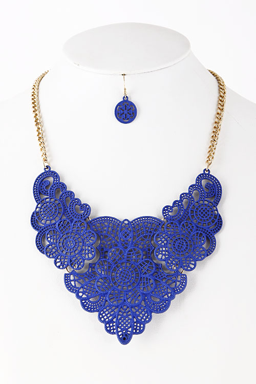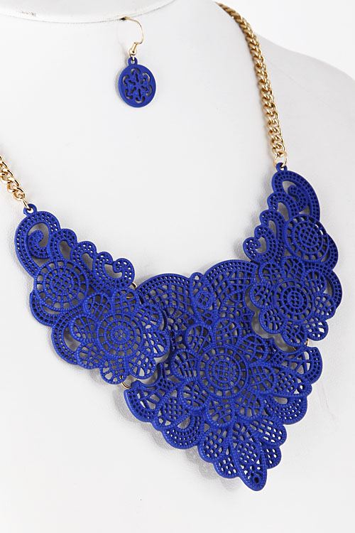 - * Floral Lace Like Cutout Statement Necklace 5FAJ16 * 15 x 3" approx.