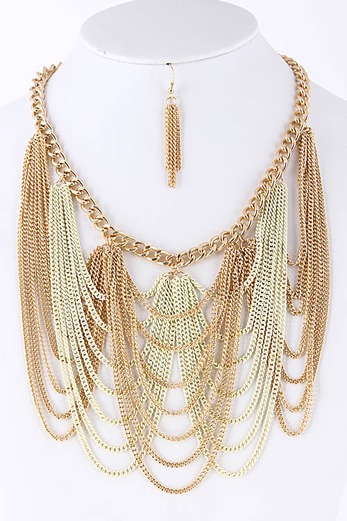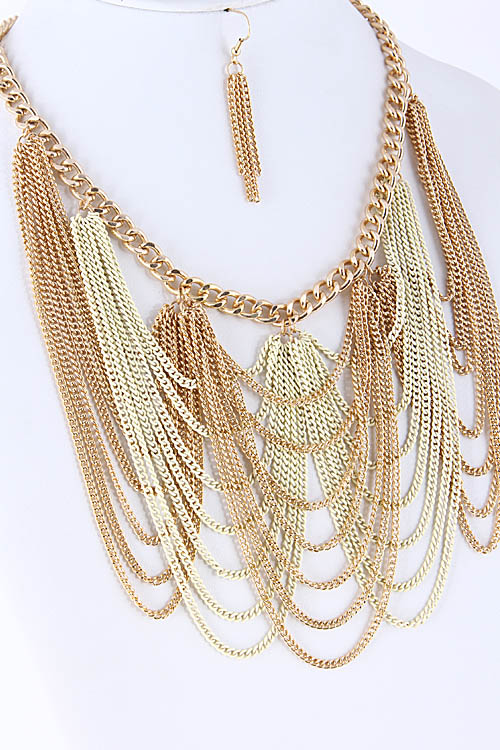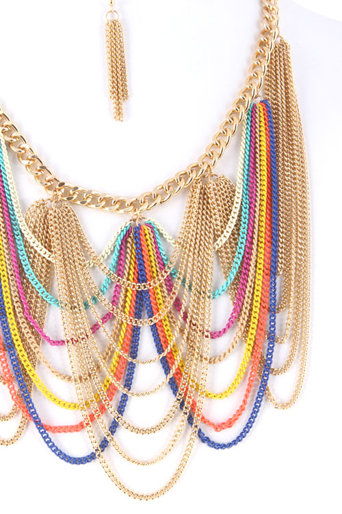 • * Chain Drop Chandelier Statement Necklace 5ABJ5 * 16" approx.